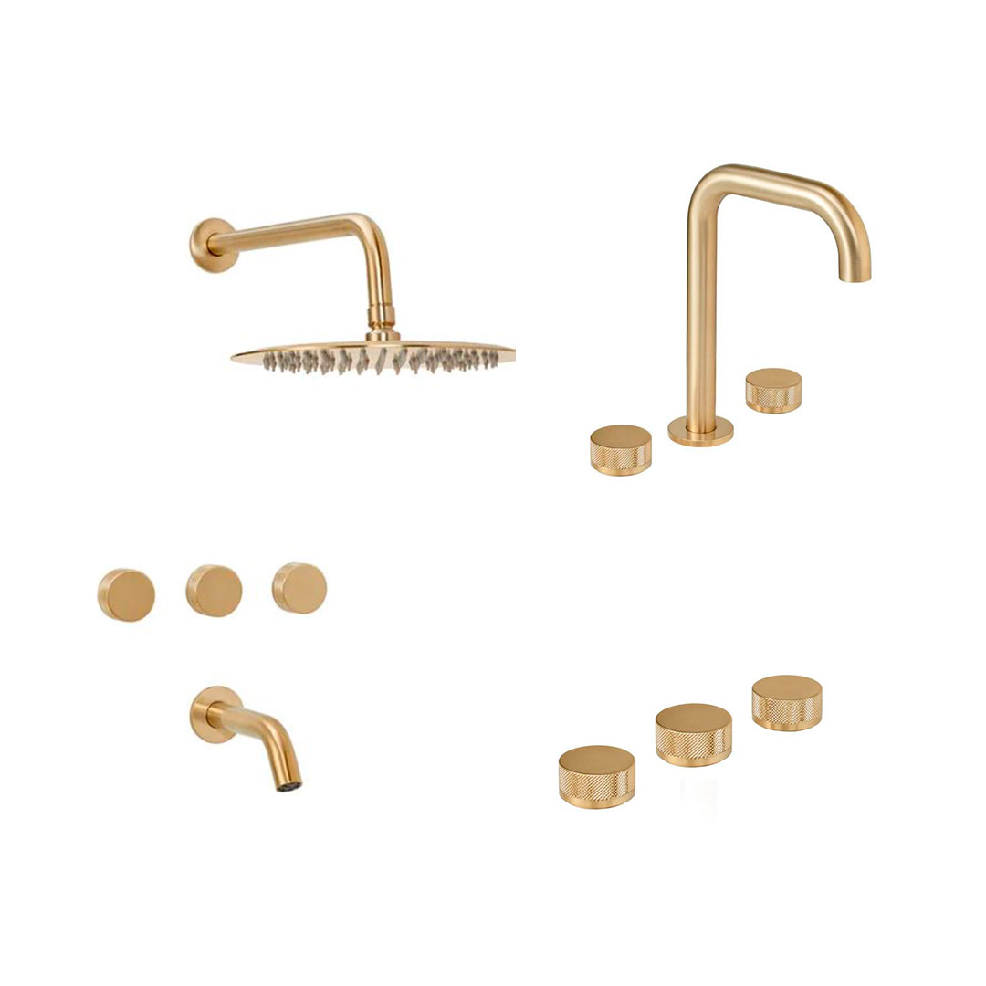 JGO GRIFERIA FABRIC GOLD DORADA PEIRANO. LAVATORIO + BIDET + DUCHA 3 VIAS. PEIRANO. 5 AÑOS GARANTIA