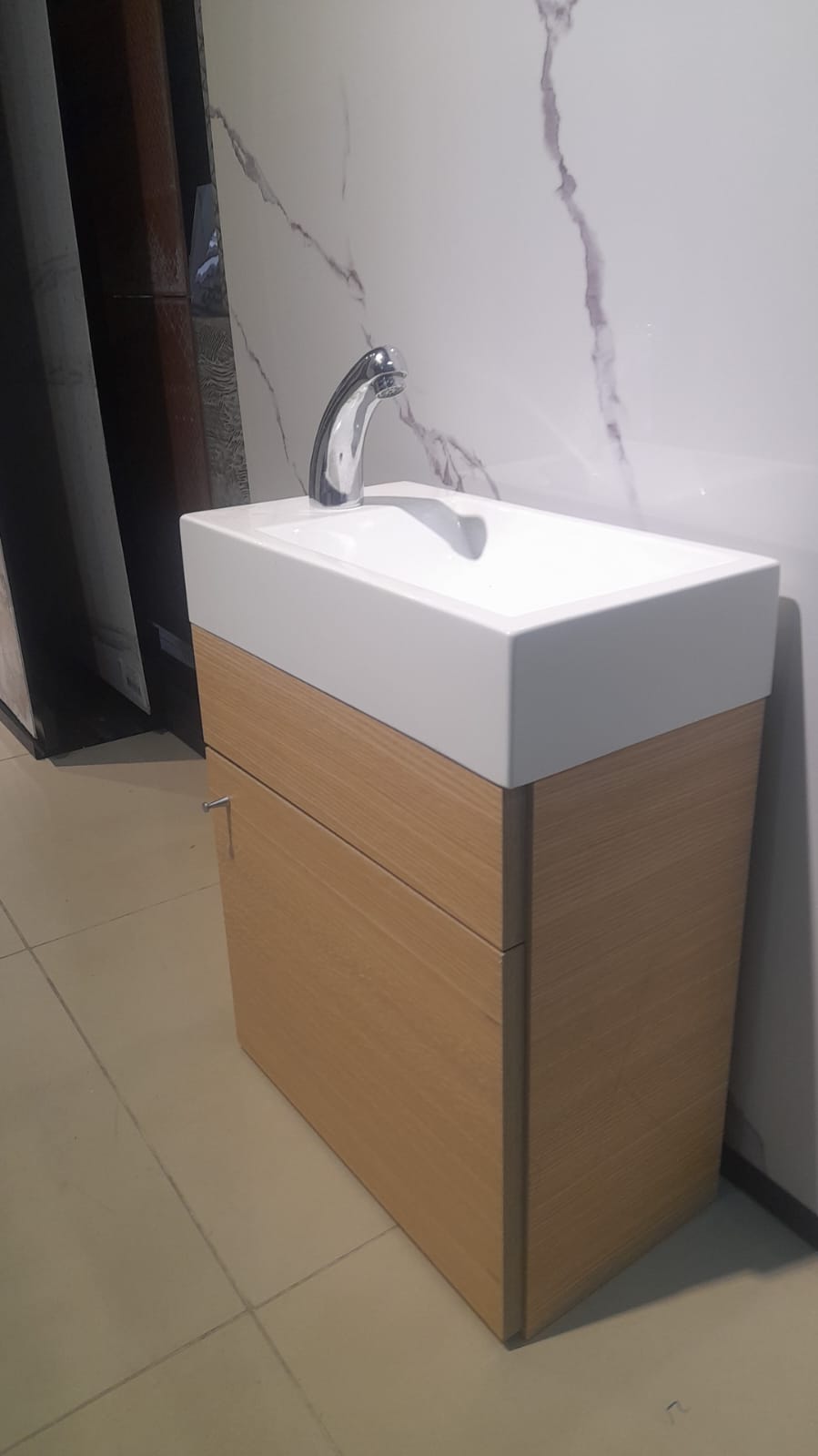 MUEBLE MDF WENGUE c/MESADA MARMOL CARRARA 80X45 ARTESANAL. PRECIO SIN GRIFERIA